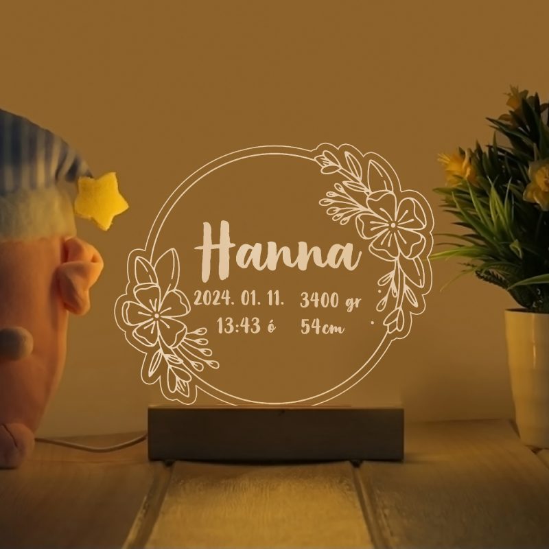 Personalizowana lampka LED z wzorem wianka kwiatowego dla dzieci jako pamiątka