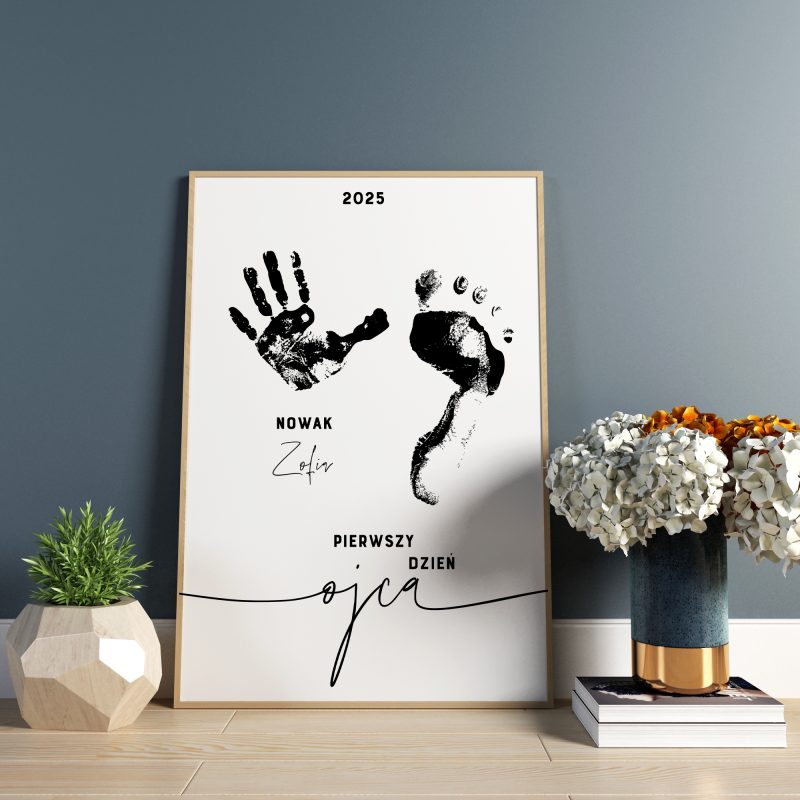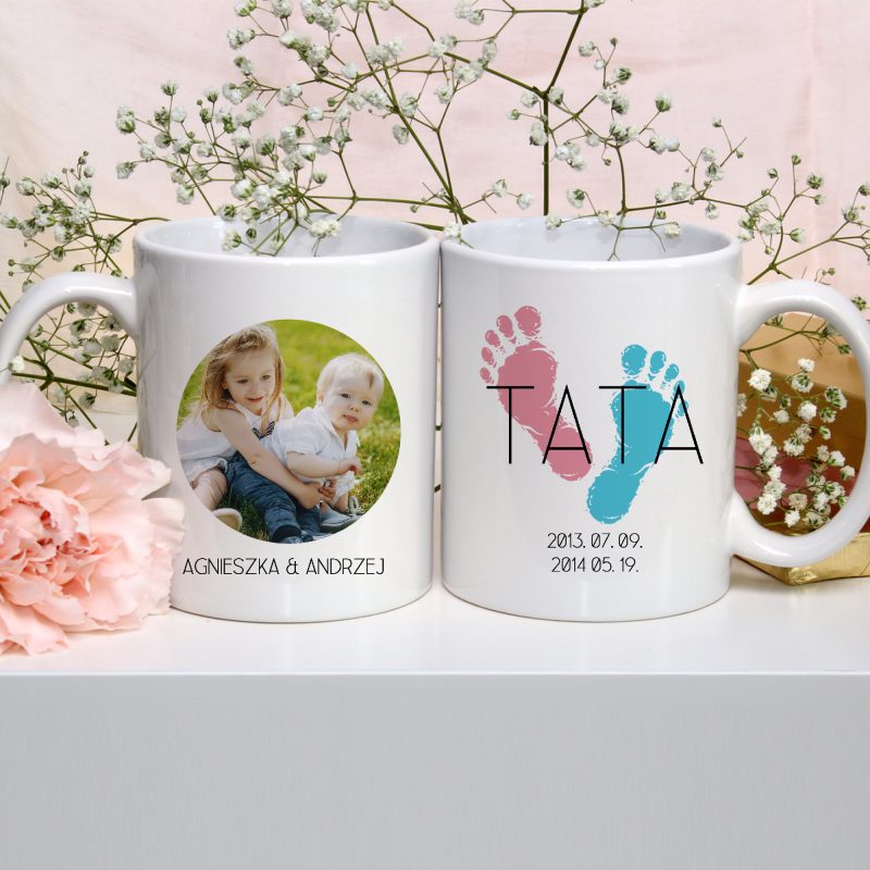 Kubek z odciskiem stopy z imieniem i datą dla taty