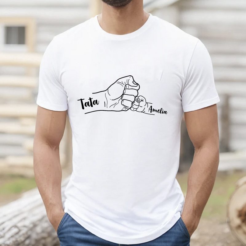 Koszulka z kolorowymi pięściami dla taty z imionami