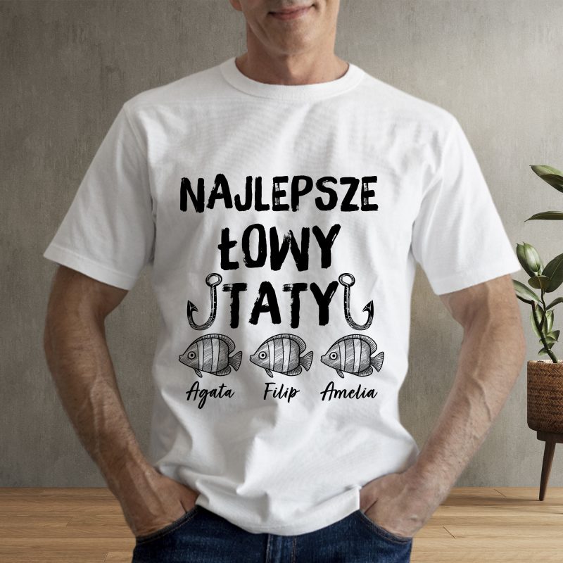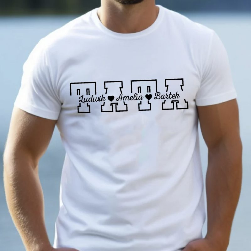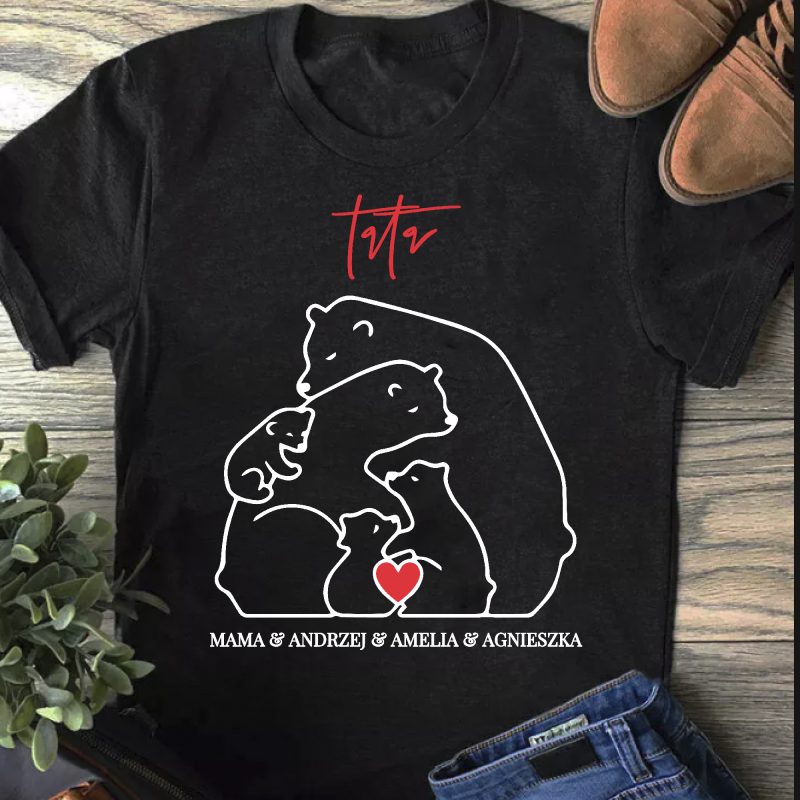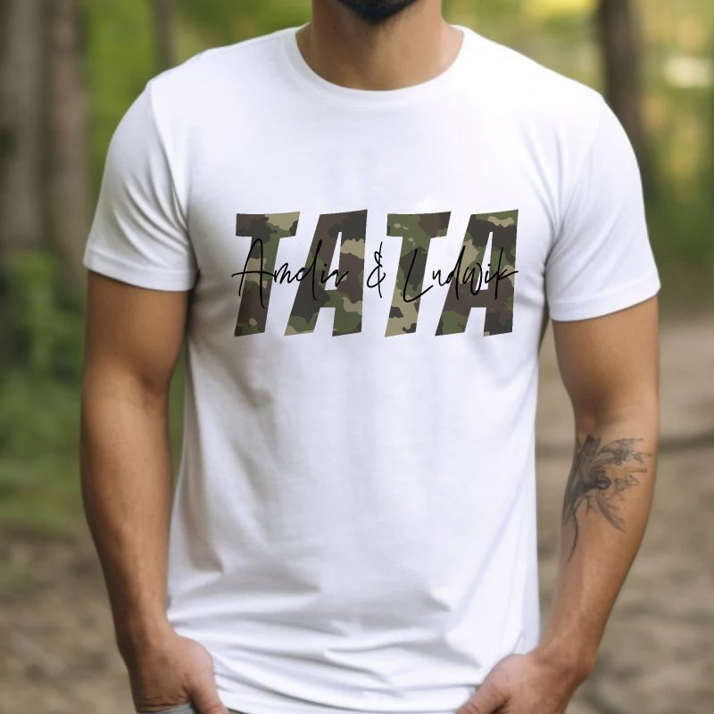 Koszulka z napisem tata w kamuflażowym wzorze z imionami