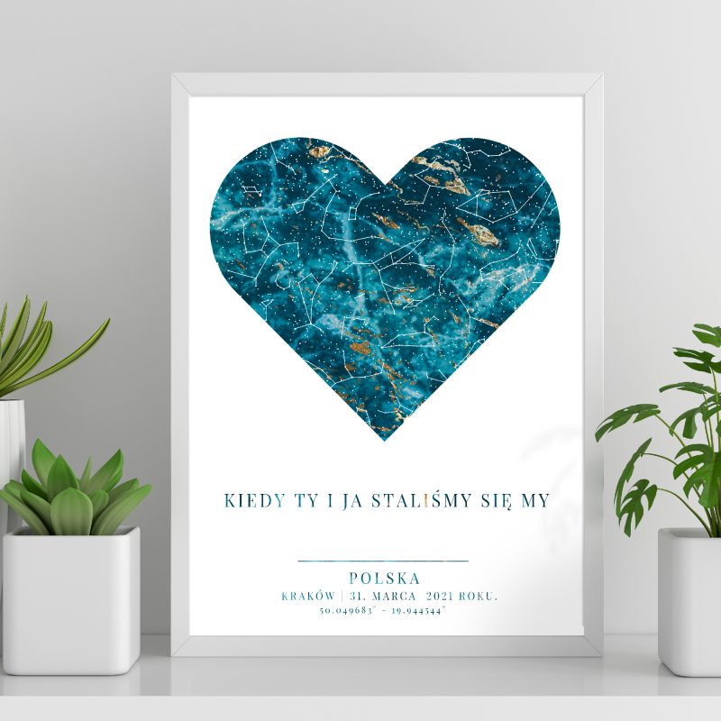 Mapa gwiazd w kształcie serca ze zdjęciem