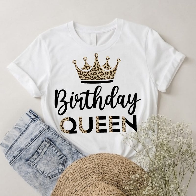 Koszulka z napisem “Birthday Queen” z koroną w panterkowym wzorze
