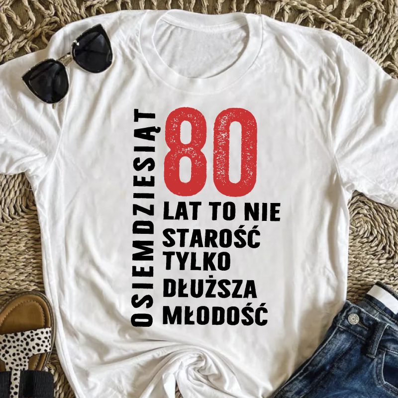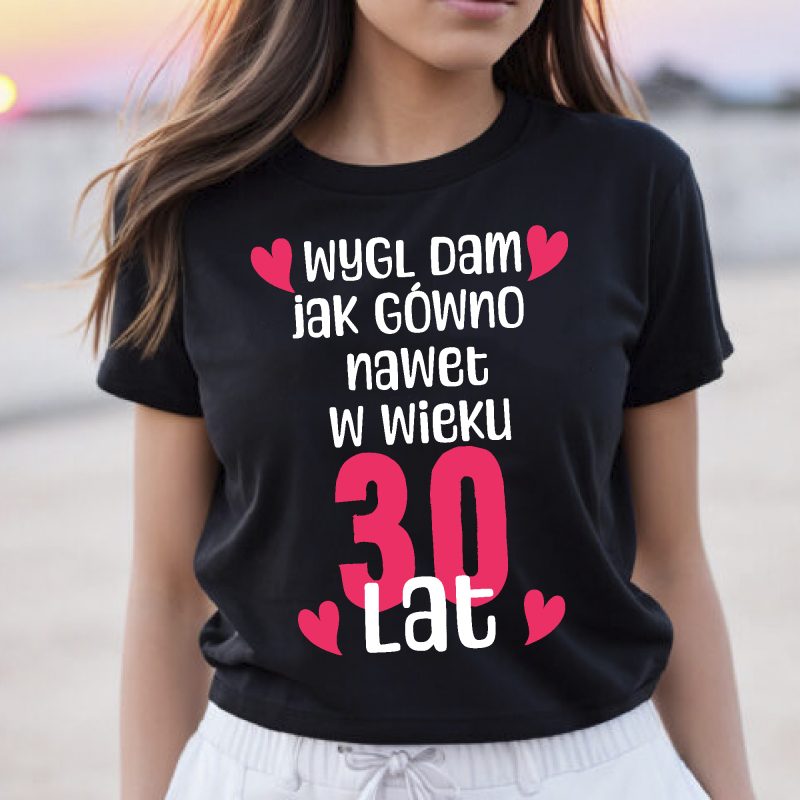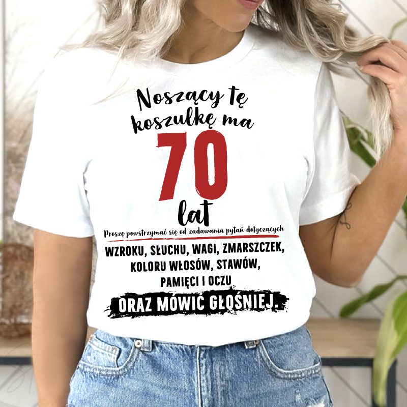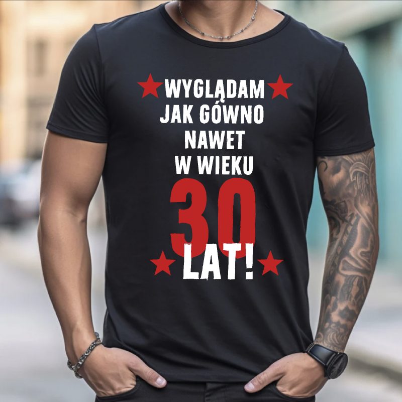 Koszulka z napisem “wyglądam jak gówno nawet w wieku … lat“