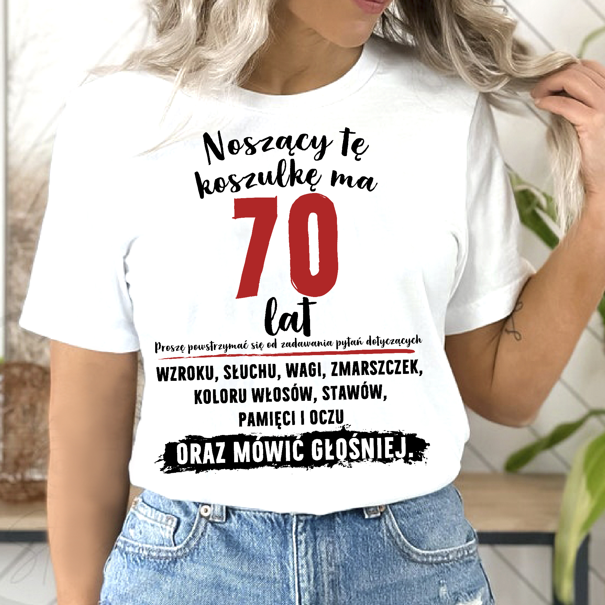 Noszący tę koszulkę ma 70 lat